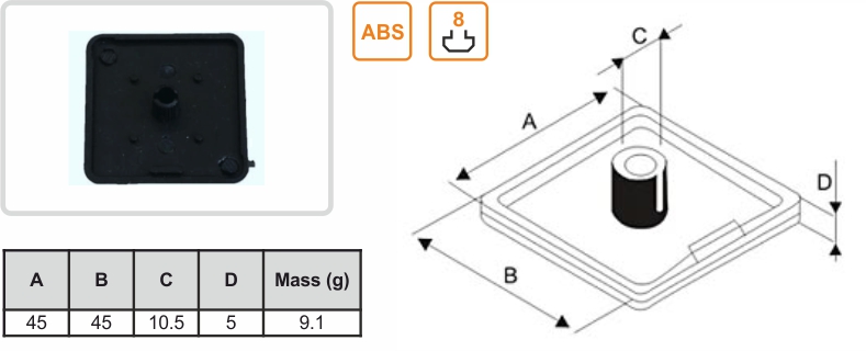 Plastic Cover Square Side for Aluminium Profile 45x45